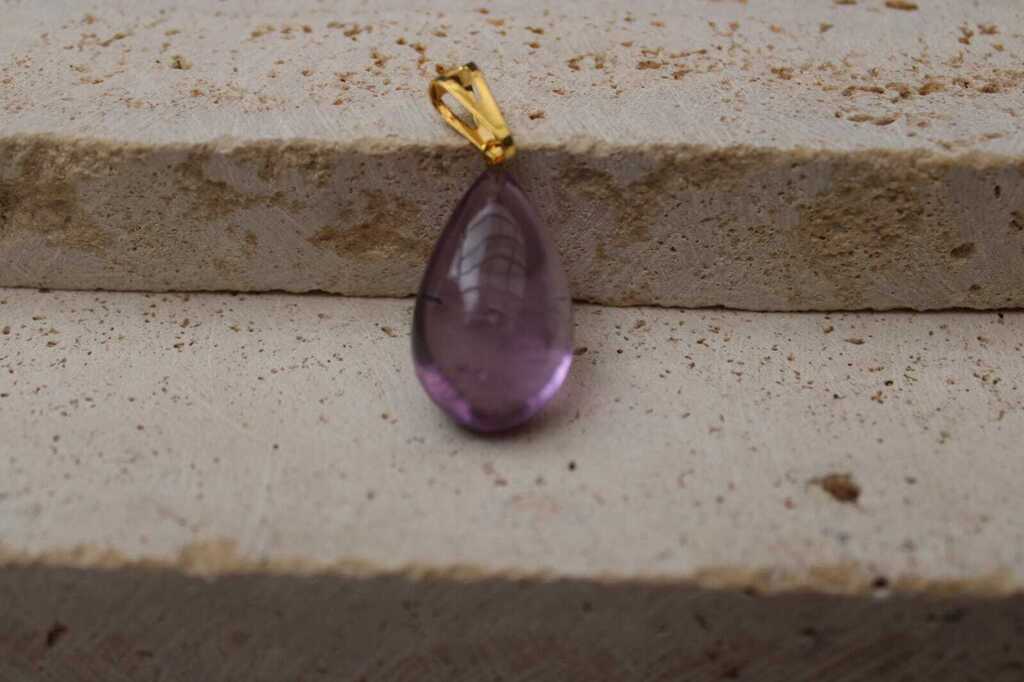 · Pingente de ametista – lapidação própria, pedra natural. Cor roxo translúcido.